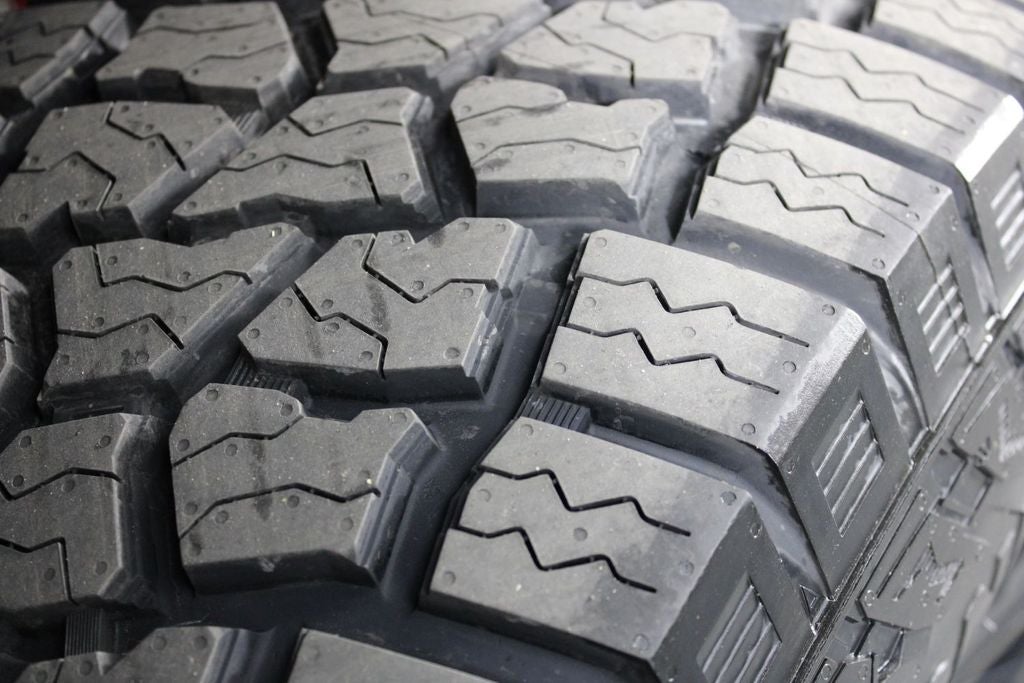 - Tires, LT275/65R18C MT blackwall Goodyear Wrangler DuraTrac